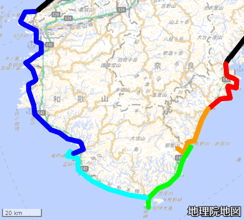 あと国道42号はほとんどが太平洋自転車道に登録されているのですが、途中に国道から外れた階段がなぜかありました。やけに急だったし、景色もそこそこだし、何だったんだあれ…と思って調べたら、バブル時代に一部だけ完成していた自転車道を近年再整備したらしい(参照)。バブル時代は完全に新規の自転車道、令和は一般道。時代の変化です(適当)。