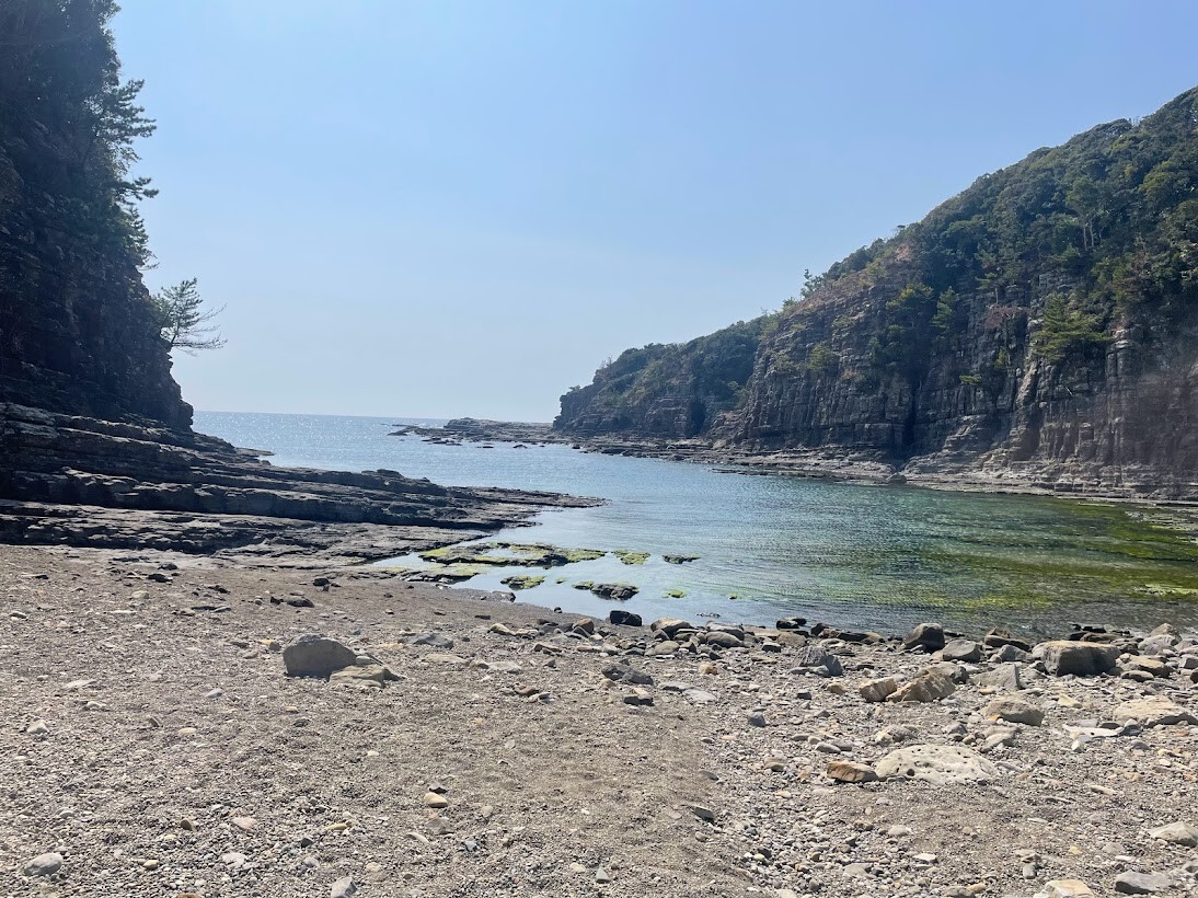「後者」の入江、地層や浸食度合いの違いが分かりやすい。SPD-SLで来るのはおすすめしない