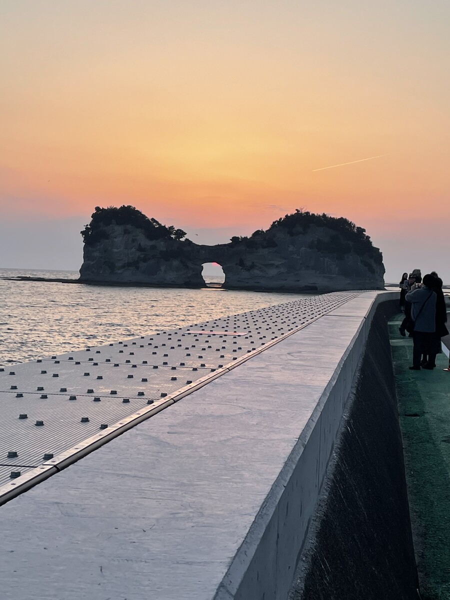 白浜は有馬や城崎と並ぶ関西の定番温泉地。温泉観光地化した猥雑な姿も含め、風景はどこか熱海界隈を想起させます。ここでは、ほぼオーストラリアの砂で構成された白良浜で季節外れの海水浴を楽しんだ後、夕方に温泉に行きました。白浜の温泉はややぬるめの弱アルカリ性。長風呂にも適した温度で、泉質もあり割と好印象です。また、近くに円月島という穴の開いた島があり、季節的にそこを夕陽が通るので見に行きましたが雲に阻まれてしまいました……ちょうどいい時期だったので残念。