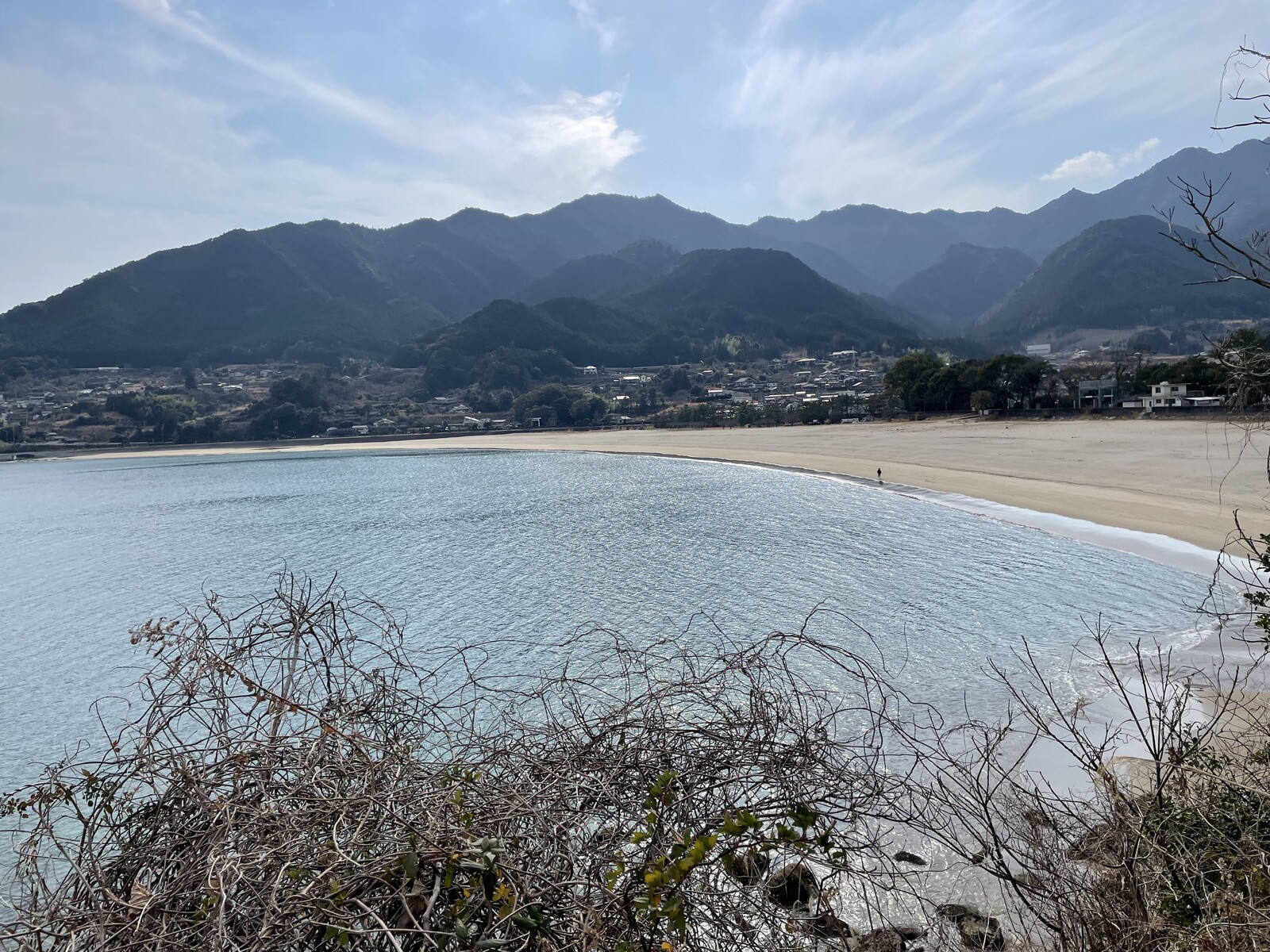この辺はリアス式海岸の中に小さな集落が点在しており、かつての交通手段は船。国道も平成に入るまで未開通区間もあったほどの道で、狭い場所は昔からの道を使ったほぼ裏路地。新しい区間は確かに広く走りやすいのですが、もののサイト群で「酷道」扱いを受けていないのが不思議なくらいです。その分海沿いの道は自然豊かで、特に新鹿(あたしか)の海水浴場は白砂がきれいでした。