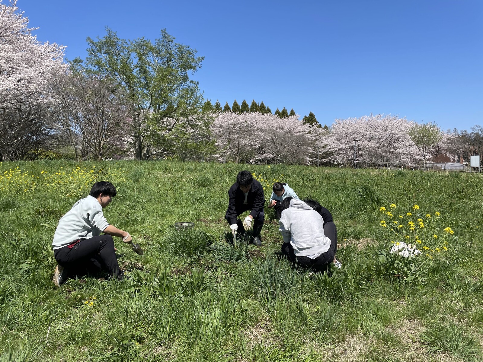 たんぽぽの根は思いの外太く、綺麗に掘り返すのはかなり大変だ。しかし相手は元気な大学生である。たんぽぽたちの奮闘もむなしく、1時間程度でザルいっぱいほど収穫することができた。
