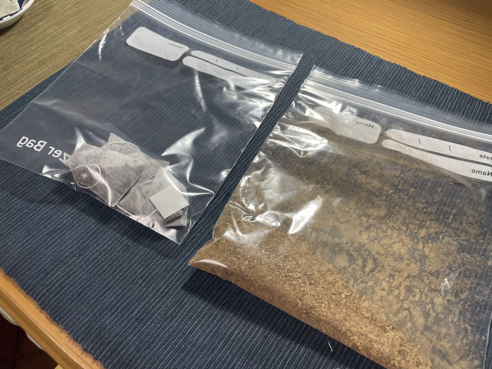 粉にしたものがこちら、右側の袋に入っているものだ。なんだか土の匂いがする気がするがきっと気のせいだろう。