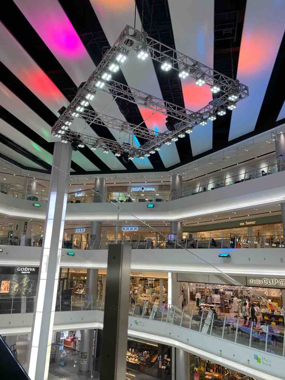 ・広場の吹き抜けの天井は正八面体を半分にしたもの