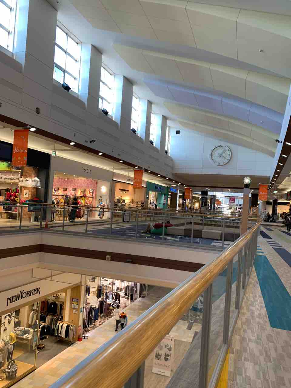 ・イオン(ジャスコ)が食品と衣料品でモールの端に分かれている