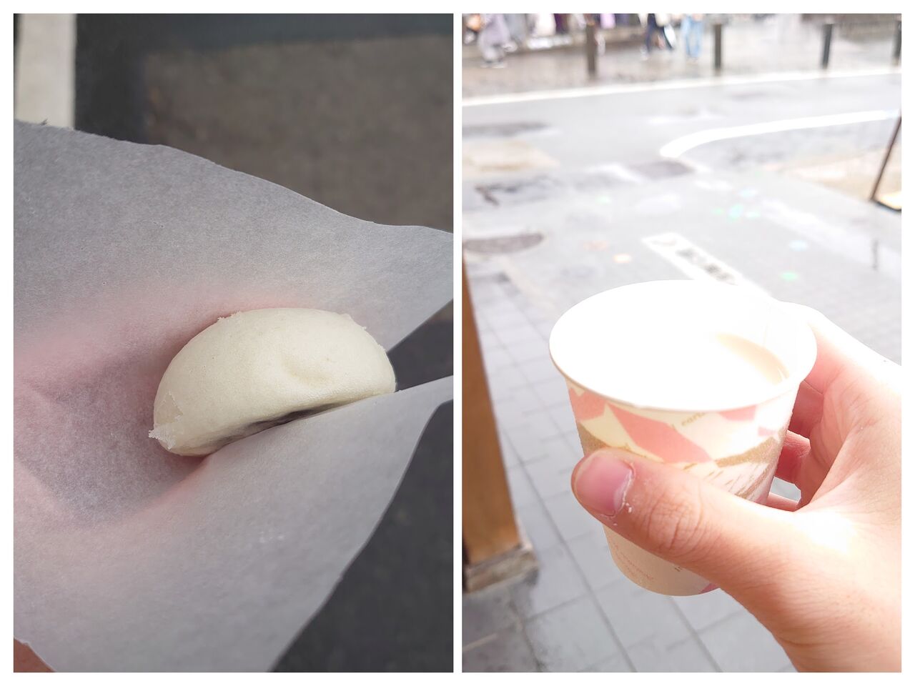 寒いので暖かい甘酒や温泉まんじゅうも買った。かなり満喫できた。